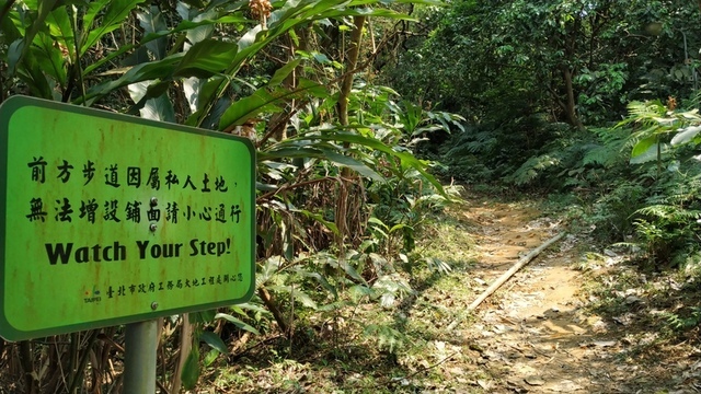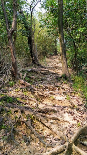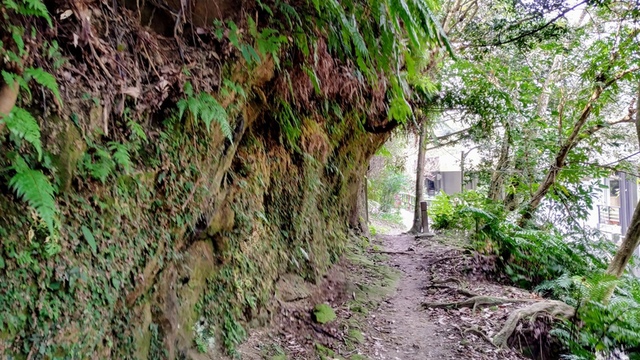 告別山海寺遺跡往上走,水泥路面已消失,取而代之的是樸質樹根和泥土的私人路徑。