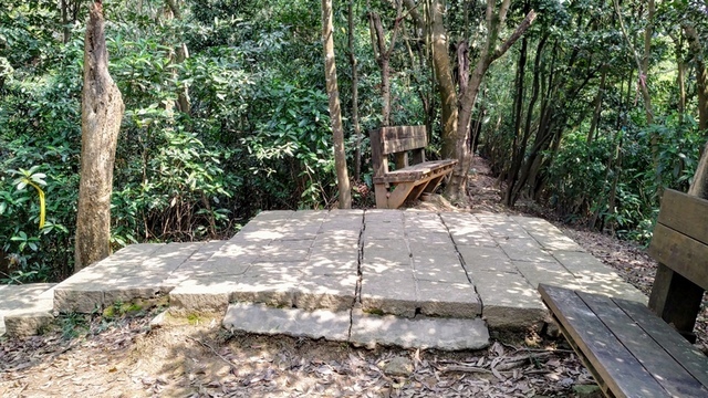 一路步道依然起起伏伏,中有休憩椅一座可供休息。