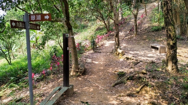 續行至翠湖/老鷲尖岔,右下翠湖,直行老鷲尖,取直行。