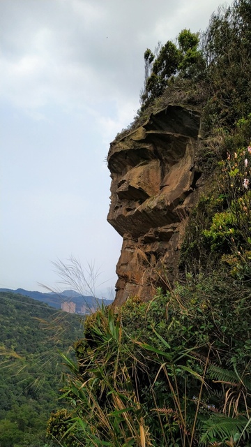 第一段拉繩休息處,可見前方岩壁酷是巨人的臉部。