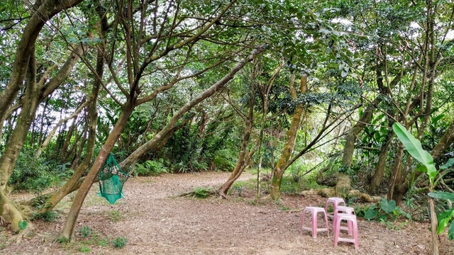 過斷崖後,步道往下,進入一處廣場,有吊床可供休憩。