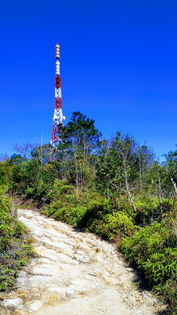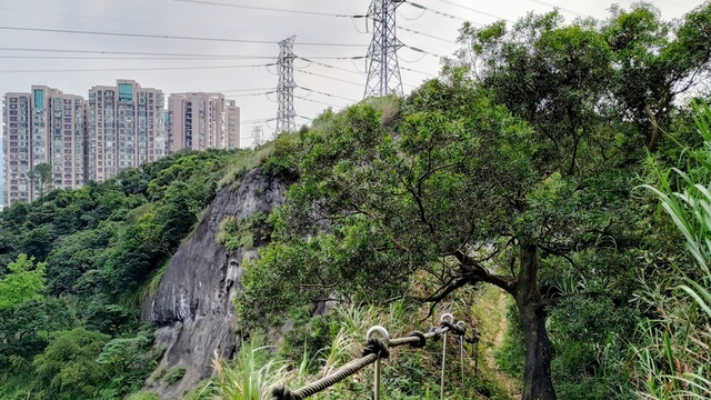 又是一段斷崖路,前方高處電塔處就是學頭坡山了,加油!