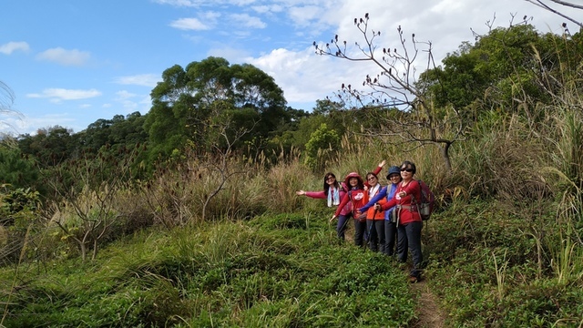 因左側是斷崖,步道從老鷲尖南峰往學頭坡山稜線旁有護欄,依序而行比較安全