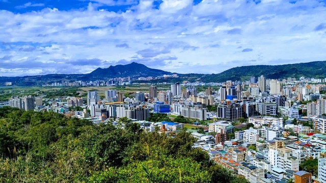 山頂旁缺口可遠眺大湖公園湖光山色。