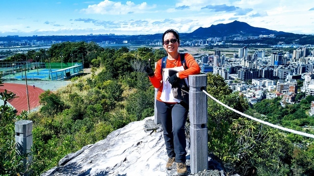 很快就抵達山頂觀景平台,此地海拔143m,有顆白鷺鷥山土地調查局圖根點,山頂可遠眺市區、大湖和內湖三尖。